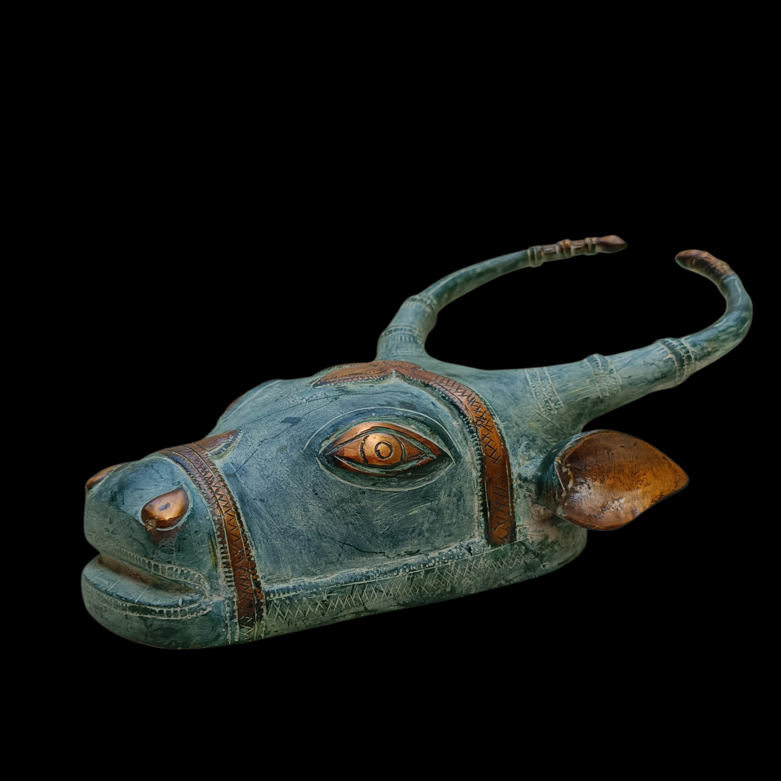 Bells are traditionally used in Hindu ceremonies and temples and are also called "Ghantas". This exquisite brass bell is handcrafted by skilled artisans with a peacock displaying its full plumage...