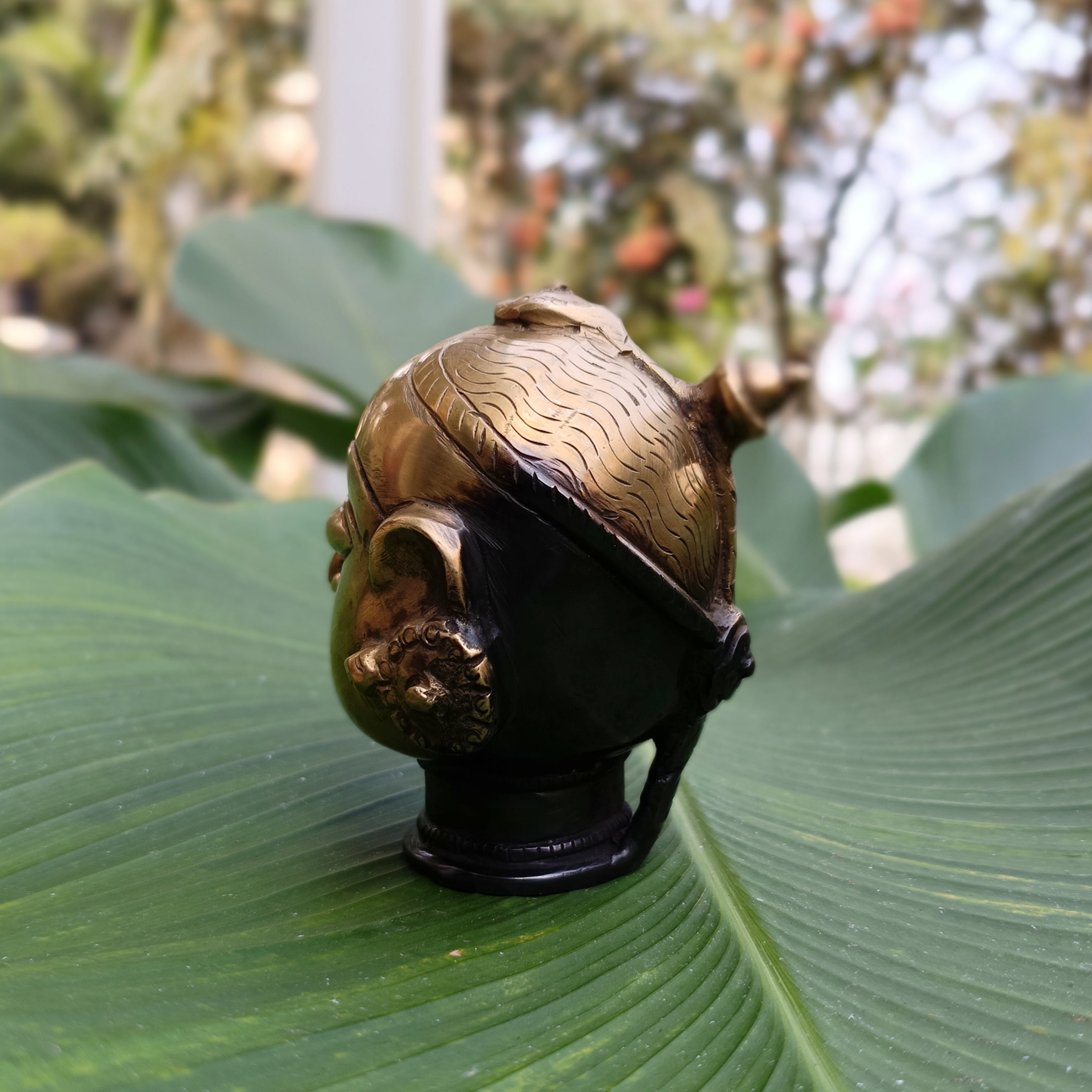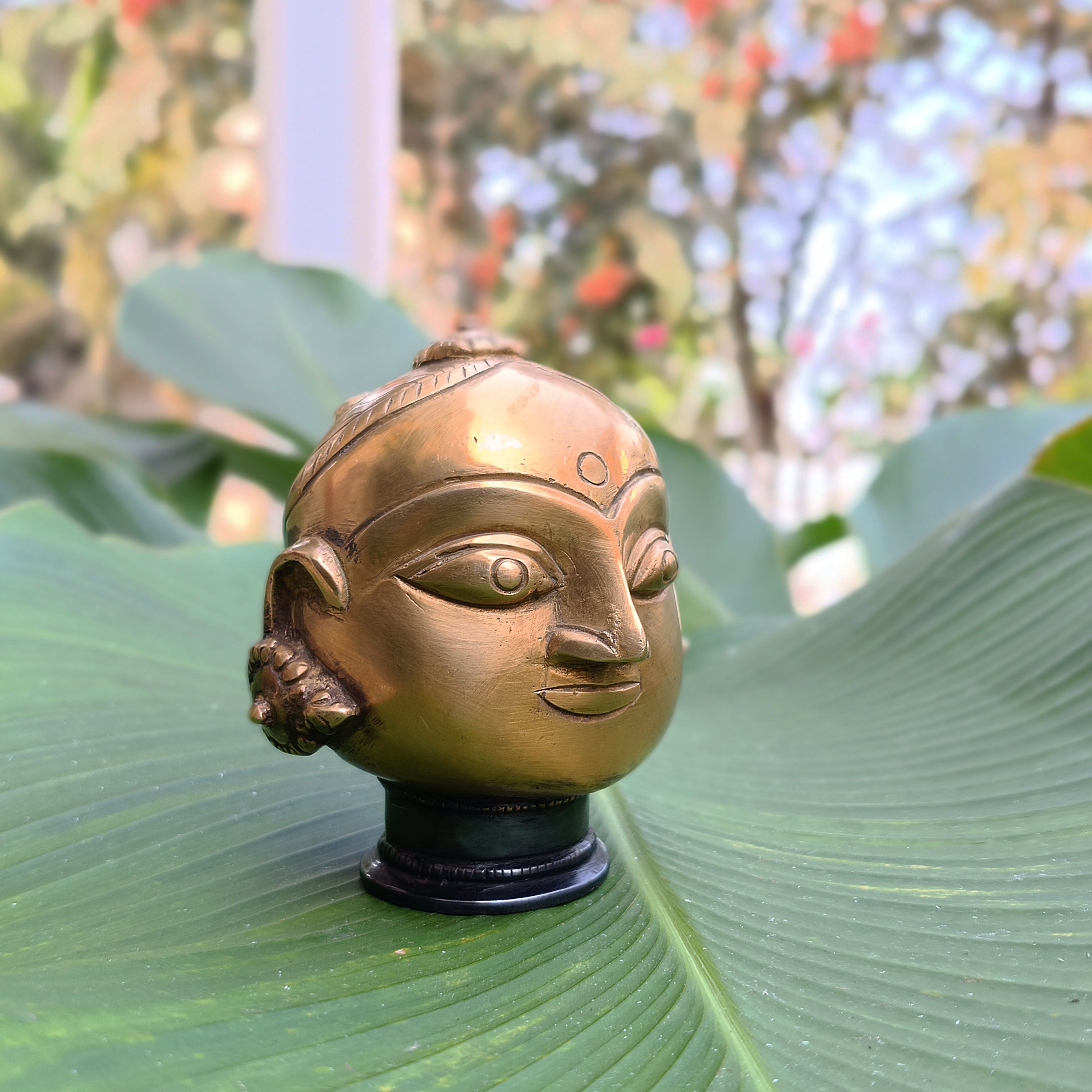 Handcrafted in brass with a delicate rich brown and gold patina, Gauri or Paravati - Goddess of love, fertility and sacrifice holds great significance especially during the famous Gangaur festival soon after Holi - the festival of colours celebrated with great enthusiasm and affection for Gauri who is also the consort of Lord Shiva .