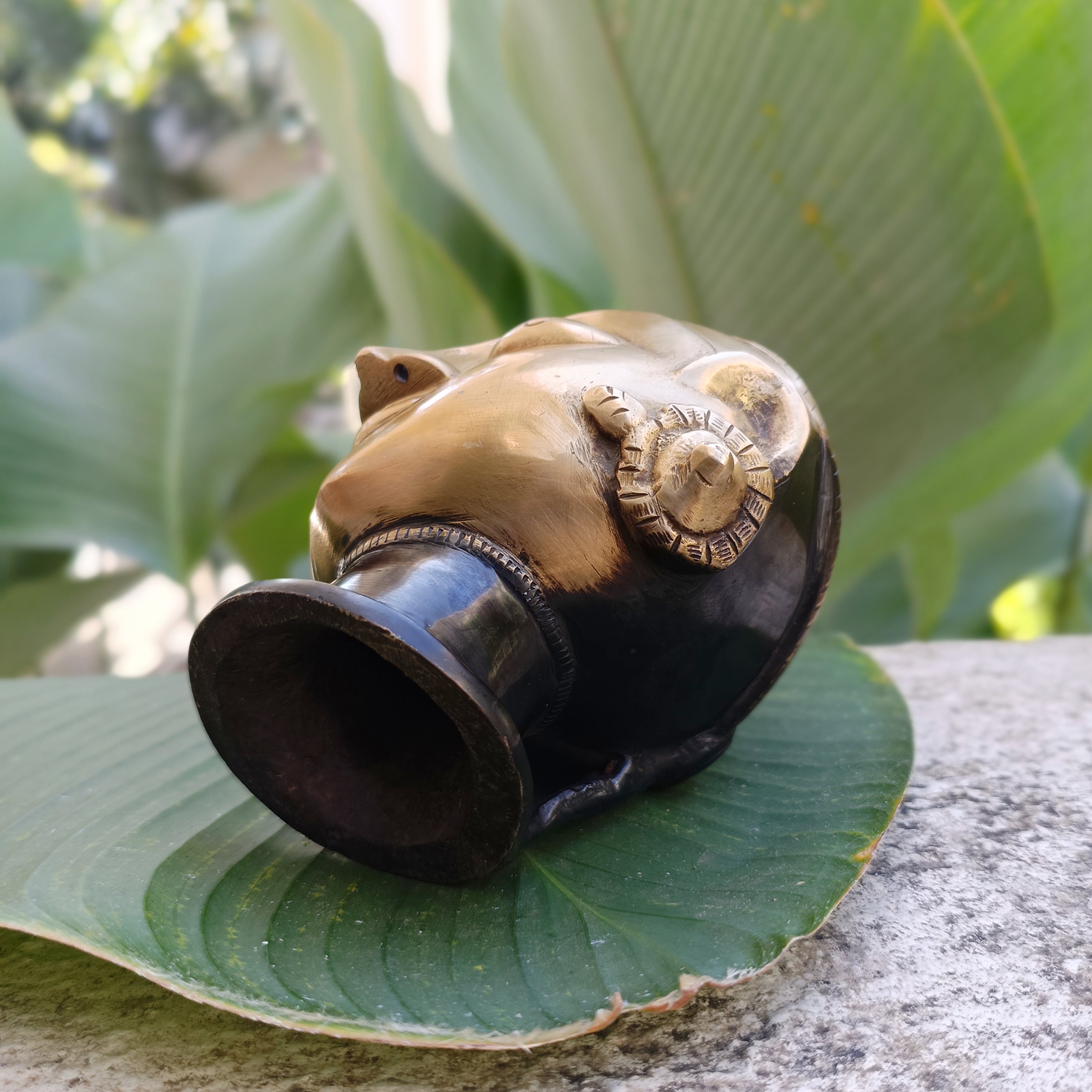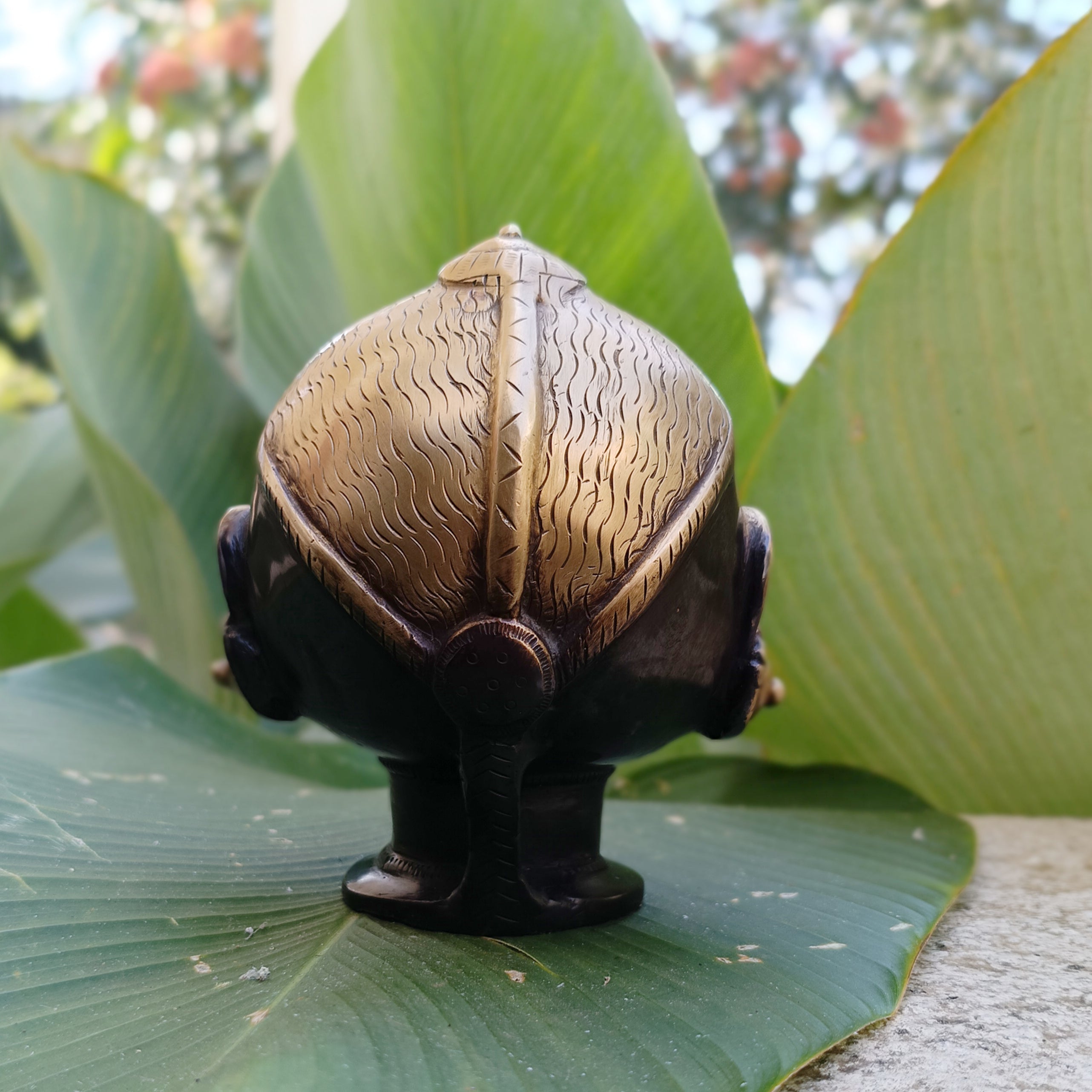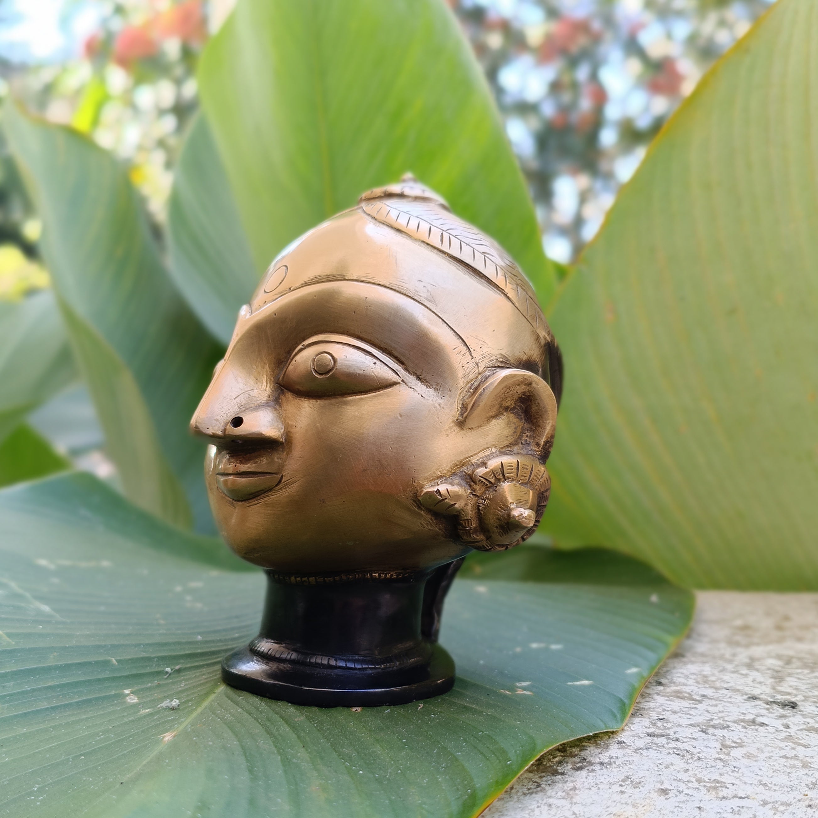 Magnificent bust | face of Goddess Gauri or Paravati handcrafted in pure brass with a brown patina on the neck.