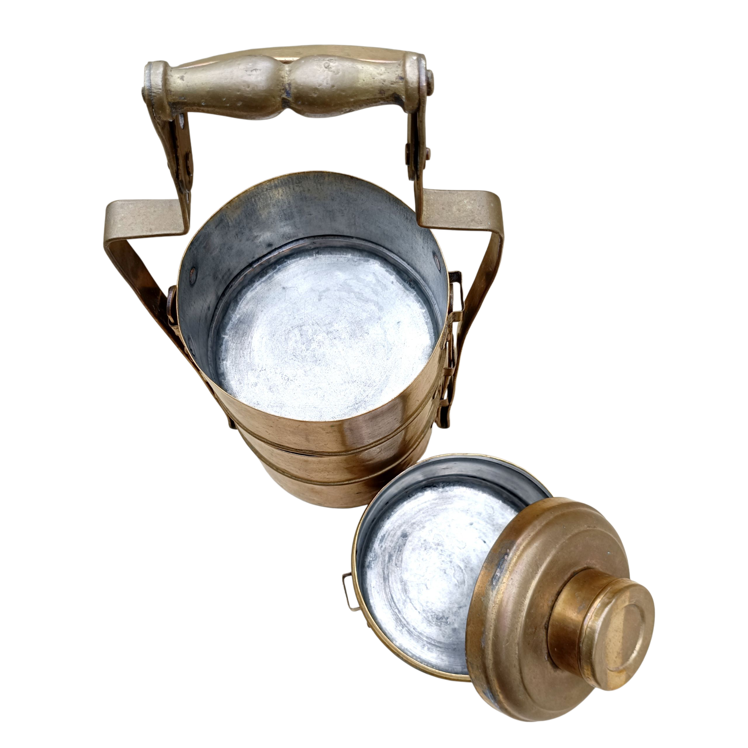 Discover the timeless charm of our Vintage Brass Tiffin, a piece of Indian culture crafted with love and tradition featuring 4 compartments, perfect for carrying a variety of home-cooked delights, just like the iconic "Dabbawalas" of Mumbai have been doing for over a century.