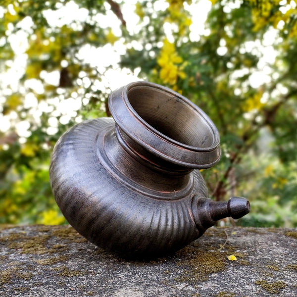 A Glimpse into Tradition and the rich Indian heritage.Crafted by skilled artisans from the heart of South India, this Vintage Brass ribbed lota / vessel with a spout in a...