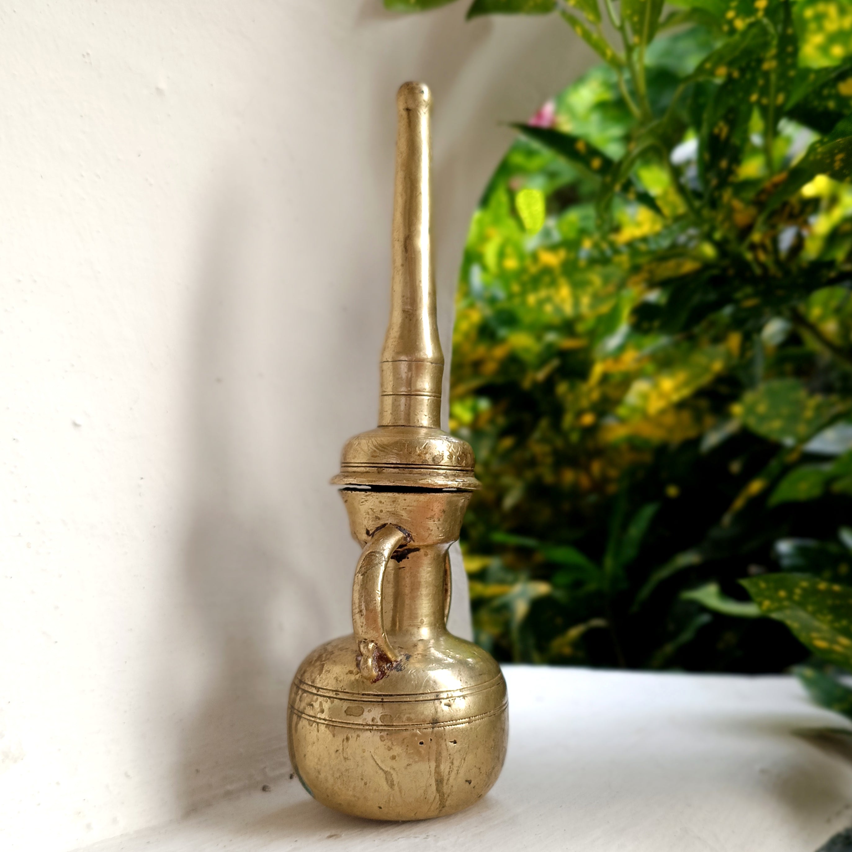 This mid-century brass oil dispenser is not just an artifact but a bridge between the past and present, ideal for collectors and admirers of authentic Indian handicrafts
